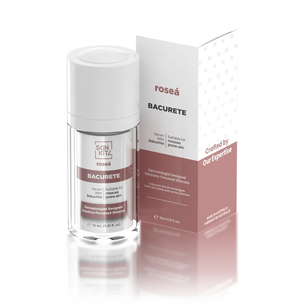 Our Bacurete serum meets the needs of those with rosacea-prone skin to reduce skin inflammation and breakouts. It features bakuchiol, a gentle botanical alternative to retinol. Bakuchiol is known for its anti-inflammatory and antioxidant properties, making it ideal for sensitive skin types that react poorly to stronger retinoids. This serum can help reduce redness and inflammation associated with rosacea as well as supporting the skin's natural repair processes. Enhanced with humectant hydrating agents, it calms the skin while providing hydration, promoting a balanced and visibly healthier complexion. This formula is designed to nurture and protect, offering a gentle approach for those struggling with rosacea.