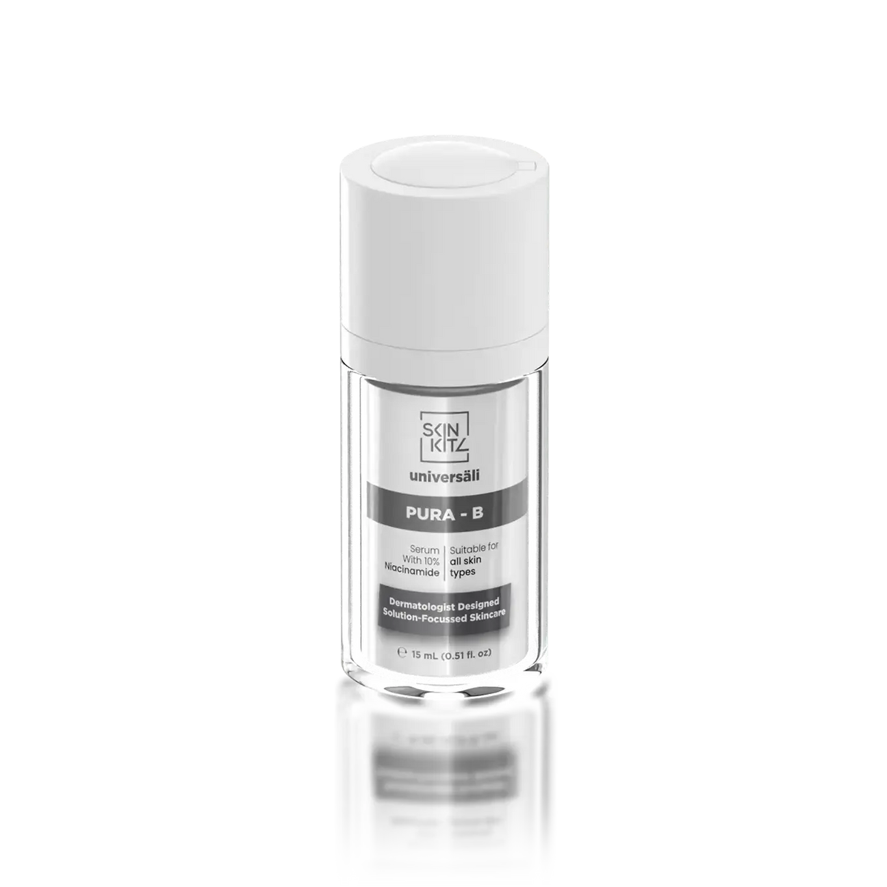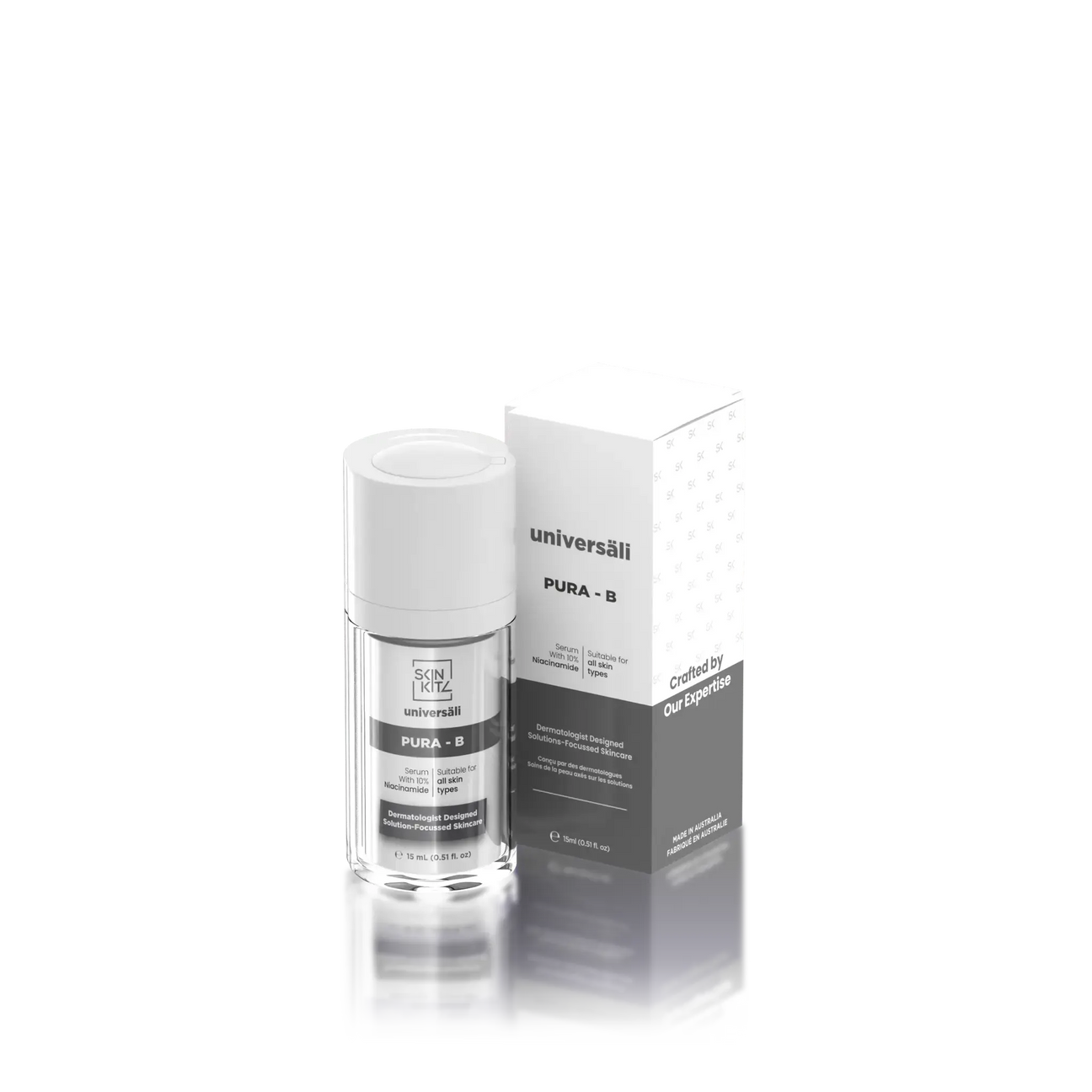 Introducing Universäli Pura-B Serum, our professionally formulated serum that features a potent but gentle 10% concentration of niacinamide. This serum is precisely formulated to maintain skin in good health, or enhance skin health across various conditions. Known for its versatility, niacinamide, or vitamin B3, can strengthen the skin's barrier, reduce redness, and lighten hyperpigmentation. It can also provide significant anti-inflammatory benefits, making it suitable for many concerns. Pura-B Serum is suitable for use in combination with all other products in the Universäli range.